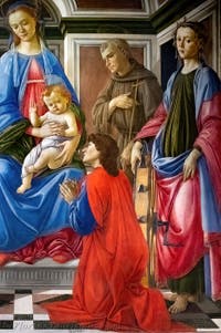 „Die Jungfrau mit dem Kind mit der heiligen Maria Magdalena, Johannes dem Täufer, Franz von Assisi, Katharina von Alexandria, Cosimo und Damian” von Botticelli in den Uffizien in Florenz